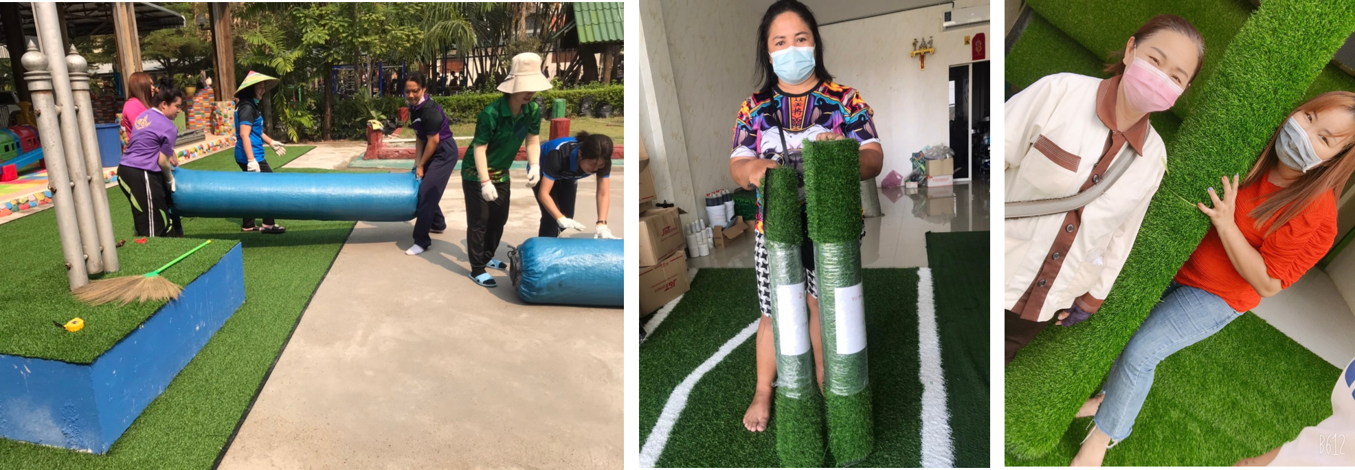เรามีทีมติดตั้งรับปูหญ้าเทียม ไว้คอยบริการให้ลูกค้า อย่างครบวงจร